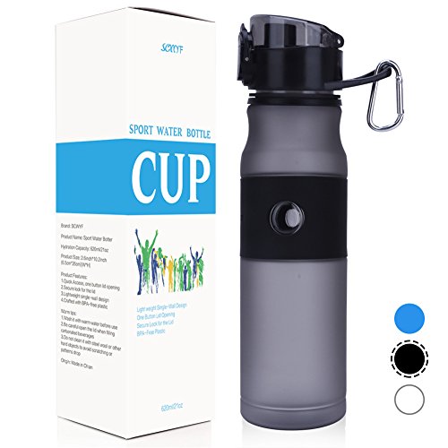 Premium Sport Water Bottle, 620 ML( 21 OZ) SCWYF Flip Top Leak Proof Lid, Eco Friendly & Non-Toxic BPA Free, One Click Open Designed for Gym, Running, Hiking, Camping, OutdoorsWhen you need to maximize your hydration levels, you need more than a small water bottle to keep you going; you need a