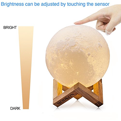 Moon Lamp by MODKON, 3D Printed Night Light, 4.7 Inch / 12 cm, Touch Control Dimmer, Warm Yellow and Cool White, Decorative Lunar Nursery Baby Room Lamp, Cordless, USB Rechargeable, Unique Gift