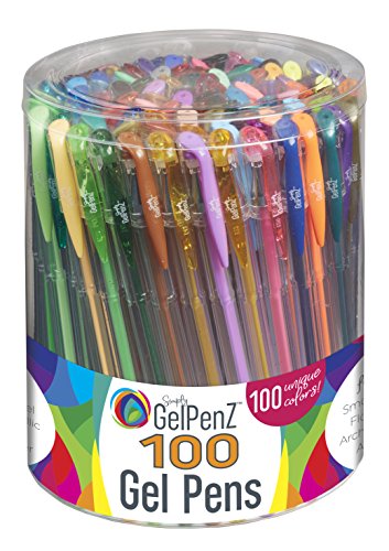 -. Title : GelPenz 100-Count Gel Pens in Clear Plastic Tub for Adult Coloring Books, 100 Unique Colors