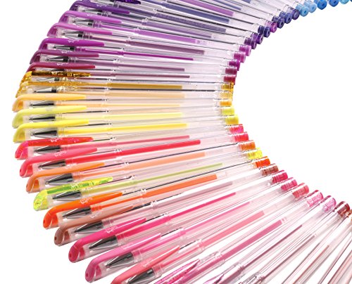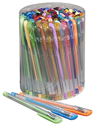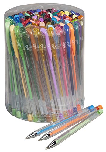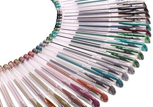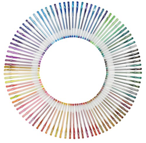 -. Feature : Gel pen set with 100 vibrant colors in a variety of unique styles including glitter, metallic, neon and pastel / Fine tip ballpoint (0.7 - 1.0 mm) is perfect for both fine detailing and filling in wider areas of color / Great for adult coloring books, mindfulness, drawing, scrapbooking, classrooms and more; intended for use by ages 12+ / Free-flowing ink applies smoothly and is water-based, acid-free, non-toxic, and archival safe / Caps click on to create a seal that keeps pens fresh longer and are color-coded to allow for easy pen identification