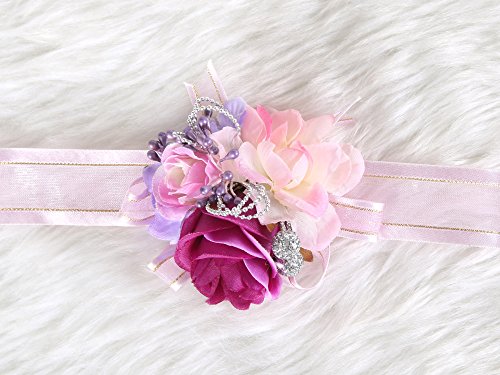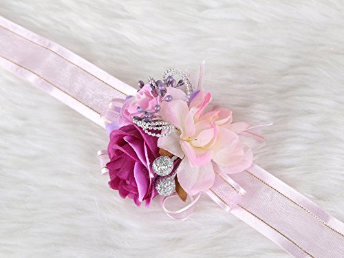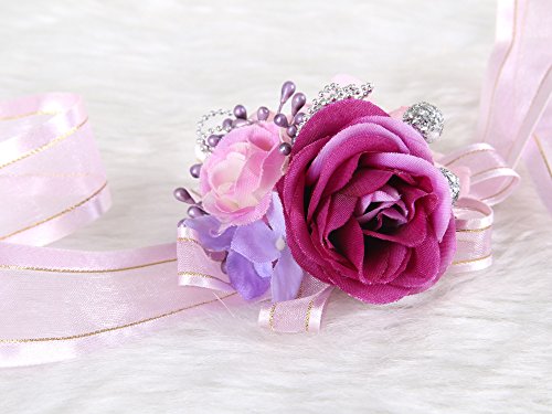 Lovely bridesmaid wrist flower corsage rose prom night party (Glam Violet)