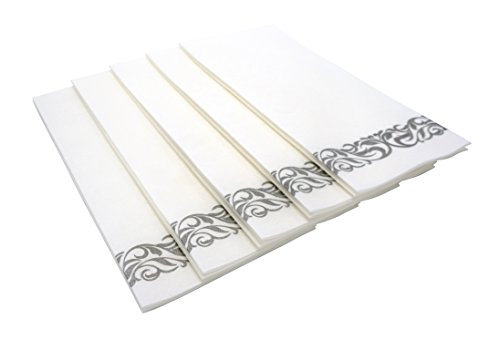 The Linen-Like disposable white paper hand towel is made of linen-like paper for greater softness and absorbency than traditional paper towels, is used once only to help prevent the spread of germs, and has a 1/6 fold design for compact storage and extra absorbency when folded. It is suitable for drying hands, wiping sink and counter surfaces clean, and other general purpose drying applications. It is typically used in guestrooms and restrooms. Unfolded, each paper towel measures 12 x 17 inches. This Guest towels have the look and feel of cloth linen, but with the cost effectiveness and disposable convenience of paper. The secret is in the revolutionary technology of fusing cotton and virgin paper towels to produce an elegant and soft, yet durable finish product. A crisp, clean appearance every time out of the box, these are great for entertaining at home. Our guest towels will make an excellent addition to any powder room, cocktail party or special event. Touch-of-Linen vs. Regular 3-Ply Napkin: Compare Premium Paper Linen with the industry's premium 3-ply dinner napkin. You will see that there is no comparison. Our Premium Paper Linen's thickness, absorbency rate and overall general appearance are second to none. More features: - Constructed from a dense paper material that feels similar to real cloth linen, but offers the convenience of a disposable product!