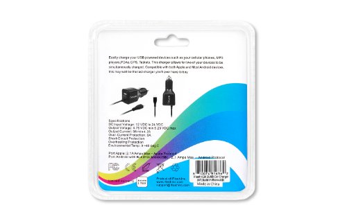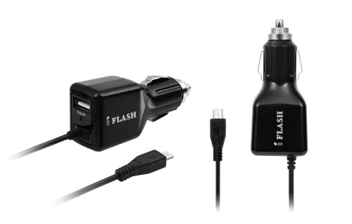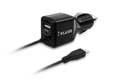 iFlash® 21W / 2.1A + 2.1A (4.2A max) Dual Port Car Charger with One Built-in Micro USB Cord for Android Such as Samsung Galaxy S6 / S6 Edge / S5 / S4 / S3 / S2, Galaxy Note 4/3/2, HTC ONE M9/M8/M7, LG G2/G3/G4, Moto X/G/E and One USB Port for Apple Device