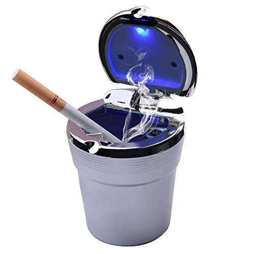 -. Title : FICBOX® Portable Stainless Auto Car Cigarette Ashtray Ash with Blue LED Light Smokeless Stand Cylinder Cup Holder