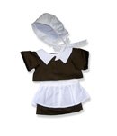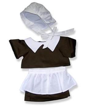 -. Binding : Toy -. Brand : The Bear Mill -. EAN : 0611265003745 -. Feature : Pilgrim girl teddy bear outfit / brown and white outfit / includes hat, top and skirt / fits 15 inch plush / 3 piece outfit -. Label : The Bear Mill -. Manufacturer : The Bear Mill -. MPN : 6049 -. PackageQuantity : 1 -. PartNumber : 6049 -. ProductGroup : Toy -. ProductTypeName : TOYS_AND_GAMES -. Publisher : The Bear Mill -. Studio : The Bear Mill -. Title : Pilgrim Girl - 6049 Fits 15" - 16" bears, includes Build a Bear, The Bear Mill, and Stuff your own Animals. -. UPC : 611265003745