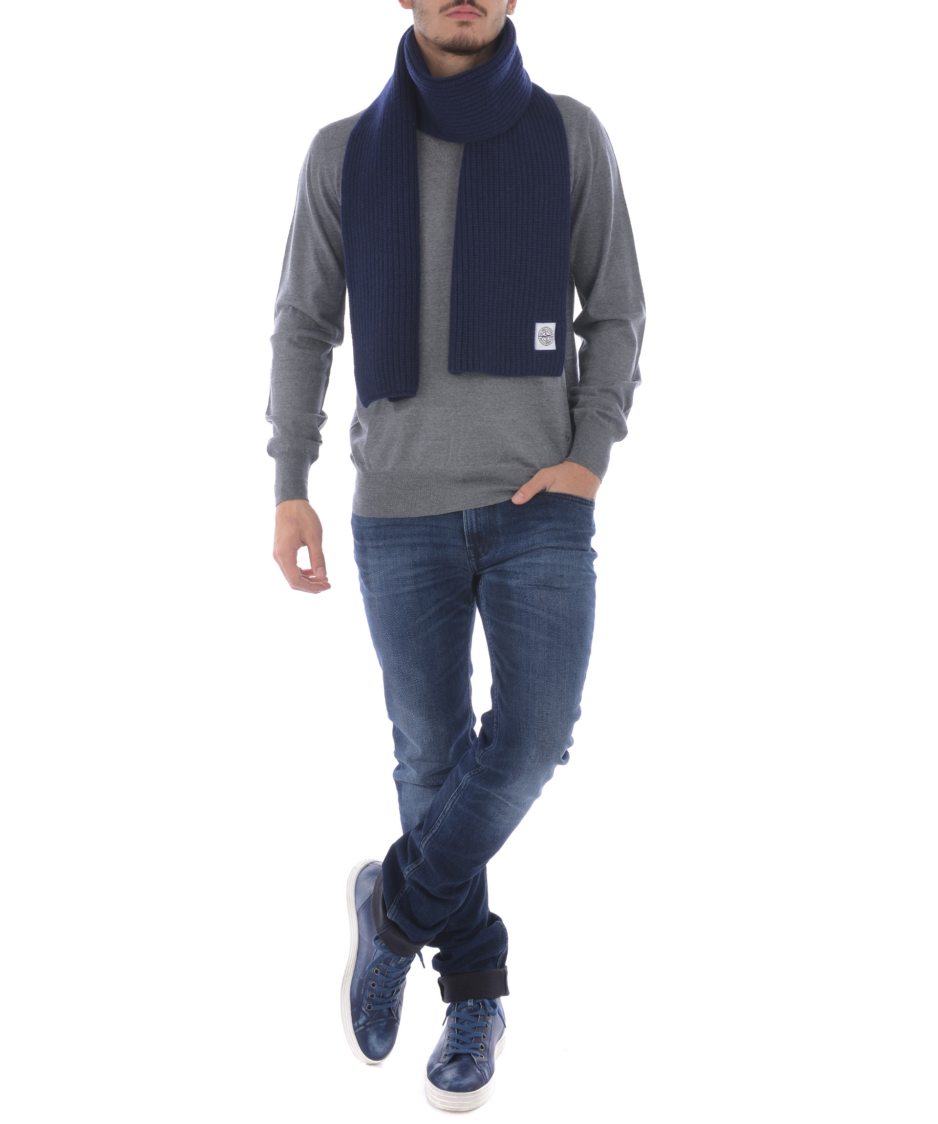 Sciarpa Stone Island in misto lana a coste Blu. Patch logo cucito al bordo. Misure: 200 cm x 26 cm 80% lana, 20% poliammide