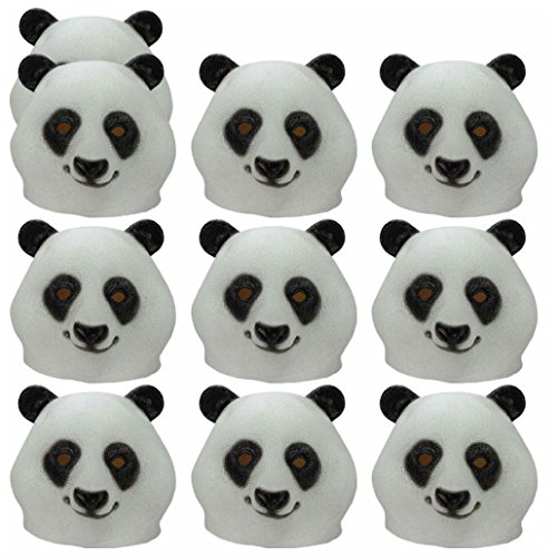 -. Feature : ♣ A good gift for children or adult. ● Free size. ● Made of environmental non-toxic Latex. / ♣ Perfect use in Halloween party or any other parties. ● Can enhance the atmosphere of festival. / ♣ Material: Latex ● Color: White+Black / ♣ Note: This item is normally have a smell of latex , before your first use, you can put it on the ventilation place for a while. / ♣ Package includes: 10 x Panda Head Mask