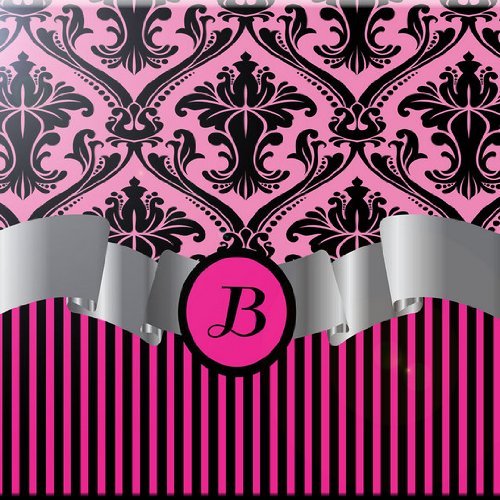 Rikki Knight RK-12intilec-2064 12" X 12" Letter "B" Hot Pink Damask Stripes Monogrammed Design Ceramic Art Tile