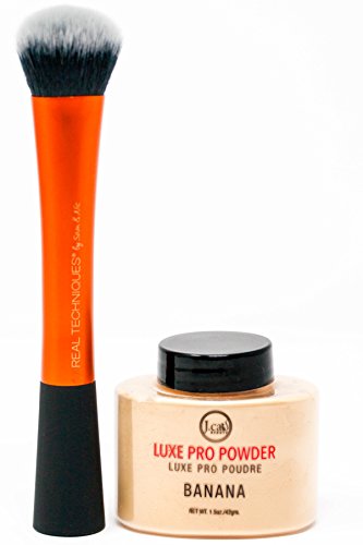 Banana Luxe Pro Powder by J Cat Beauty with Real Techniques Expert Face Brush – Setting Foundation Make up – professional blending brush set –...