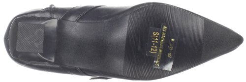 - Feature : Child Costume Witch Shoe. / Black w/ Silver. Polyurethane. / Childrens US Shoe Sizes: SM (11-12), MED (13-1), LG (2-3) / Pump with Narrow Pointed Toe, Curve Shaped Heel, Small Side Zipper, Adjustable Strap Across Top with Small Silver Buckle Covered with Faux Rhinestones, apprx 1 3/4" Heel