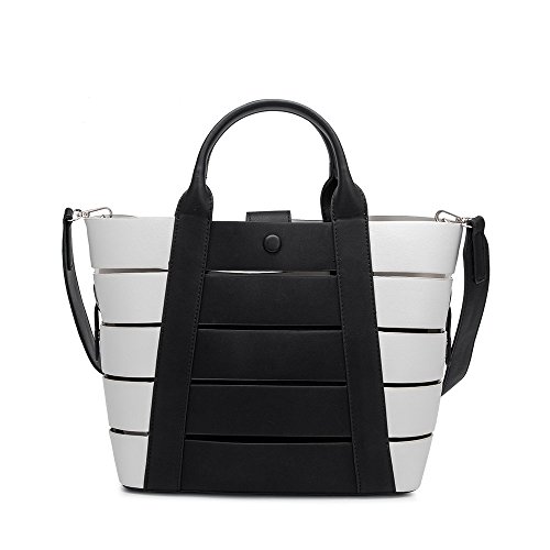 Melie Bianco Stylish Crossbody Strap Shoulder Bags For Women - Striped Tote Design - Luxury Vegan Leather (Black)