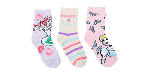Disney Princess Girls 3pk Crew Socks Fits Girls Sock Size 6-8.5 Fits Girls Shoe Size 7.5-3.5