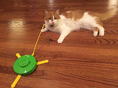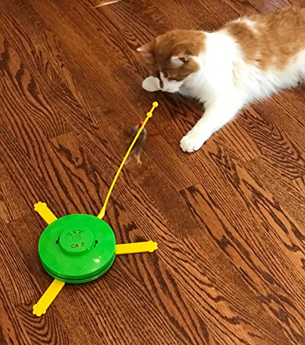 -. Binding : Misc. -. Brand : CA&T -. EAN : 0731882885613 -. Feature : Attach the feather and watch your cat chase and play / Attach the stick and cover it with the included yellow cover, and your cat will have a fun game of hide & seek / 3 settings: Slow, Fast, or Random / Both attachments and yellow cover included / Requires 3AA batteries (not included) -. Label : CA&T -. Manufacturer : CA&T -. PackageQuantity : 1 -. ProductGroup : Pet Products -. ProductTypeName : PET_SUPPLIES -. Publisher : CA&T -. Studio : CA&T -. Title : CA&T Flying Feather and Hiding Mouse Cat Game - Best Interactive Toy for your Cat! -. UPC : 731882885613