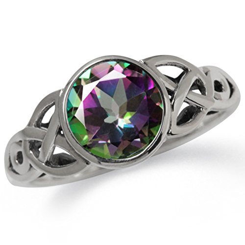 -. Title : 2.16ct. Mystic Fire Topaz 925 Sterling Silver Triquetra Celtic Knot Solitaire Ring