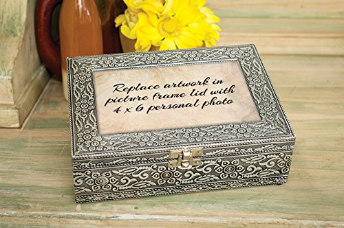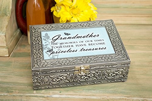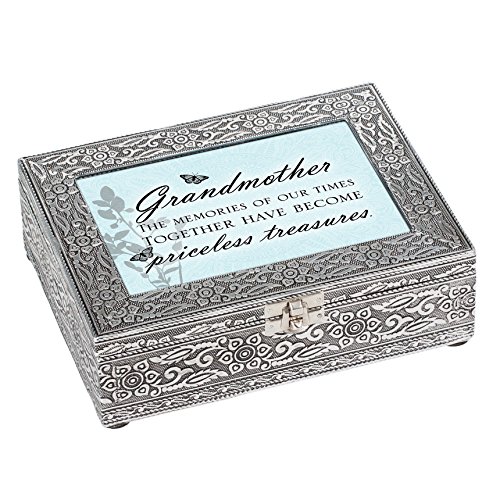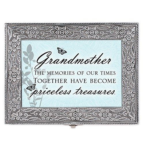 Grandmother Priceless Treasures Silver Stamped Metal Jewelry Music Box Plays Tune Wind Beneath My Wings