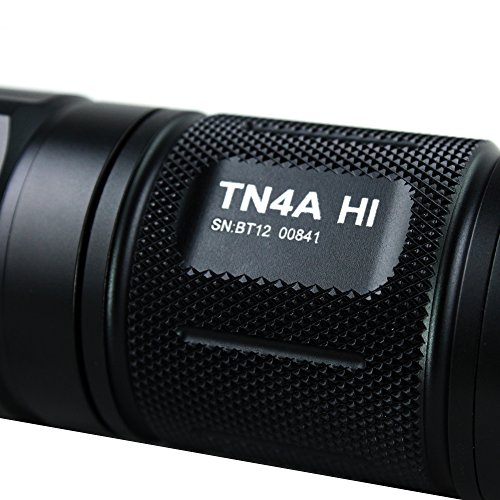 -. Feature : (1)TN4A is a newly launched compact thrower flashlight with high-quality beam from orange peel reflector. / (2)Driven by four AA batteries, TN4A reaches 1150 lumens output. AA battery, the economical and readily available power source, makes TN4A a better choice for you to use everywhere. / (3)ThruNite ITC Technology is well-applied in TN4A. With ITC, The light will automatically lower the current when temperature in LED or driver rises to 80 degrees centigrade to protect the flashlight from overheating. Thus to extend its lifespan. / (4)TN4A is characterized by the Low Voltage Indication function. That is to say, when the indicating light on the switch turns from blue to red, it means the batteries should be replaced. / (5)Built to Last --Designed for durability anodized; Ultra clear tempered glass lens with anti-reflective coating; and durable resistance and waterproof materials for use in extreme conditions; Reversed polarity protection system prevents damage to the light.