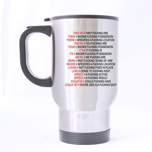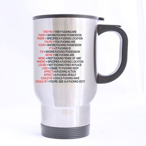 -. Title : Novelty Design 14oz Funny & Humor Bad Grammar Expletive (Sliver) Mug Stainless Steel Travel Mugs - Top Quality - Lifetime Warranty