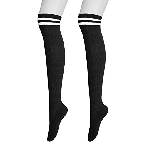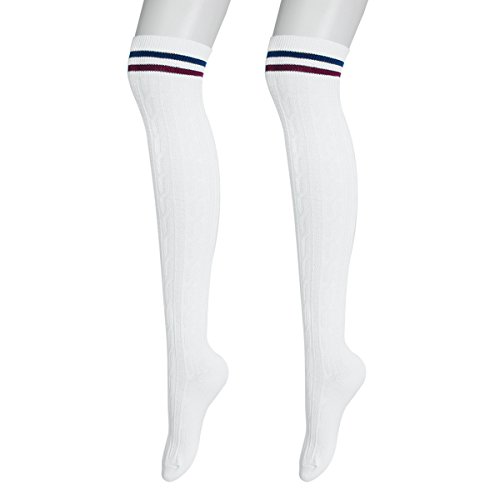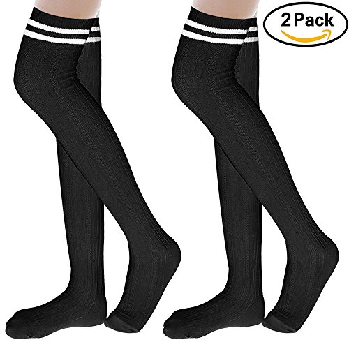 -. Feature : MATERIAL: 100%cotton ,Thick, durable and in great quality .The soft material is fit for skin, comfortable and breathable. / FASHION DESIGN: This is must have for all girls. Knee-high socks with double stripes at the top, easy matching for most of your daily wearing.You can pair them with tights, leggings, skirts, skinny jeans for a sweet cozy look.Comfortable stretch for all day wear. / GREAT SOCKS WITH SUPER STRETCHY: Highly elastic and durable, socks fit just over the knee on average height woman, flexible and comfortable. It will fit for your legs, the elastic bands at the top of the socks will not make you feel uncomfortable. / BEST GIFTS FOR FRIENDS: Thigh high socks are the ideal complement to your favorite skirts or shorts, suitable for most occasions in your daily life, it is also a perfect gift to yourself or friends . / Fine Quality Genuine Ladies Thigh-high socks.Super cute with shorts and miniskirts. Not only sexy but will also keep you warm. Add charm to your cosplay costume and casual wear.