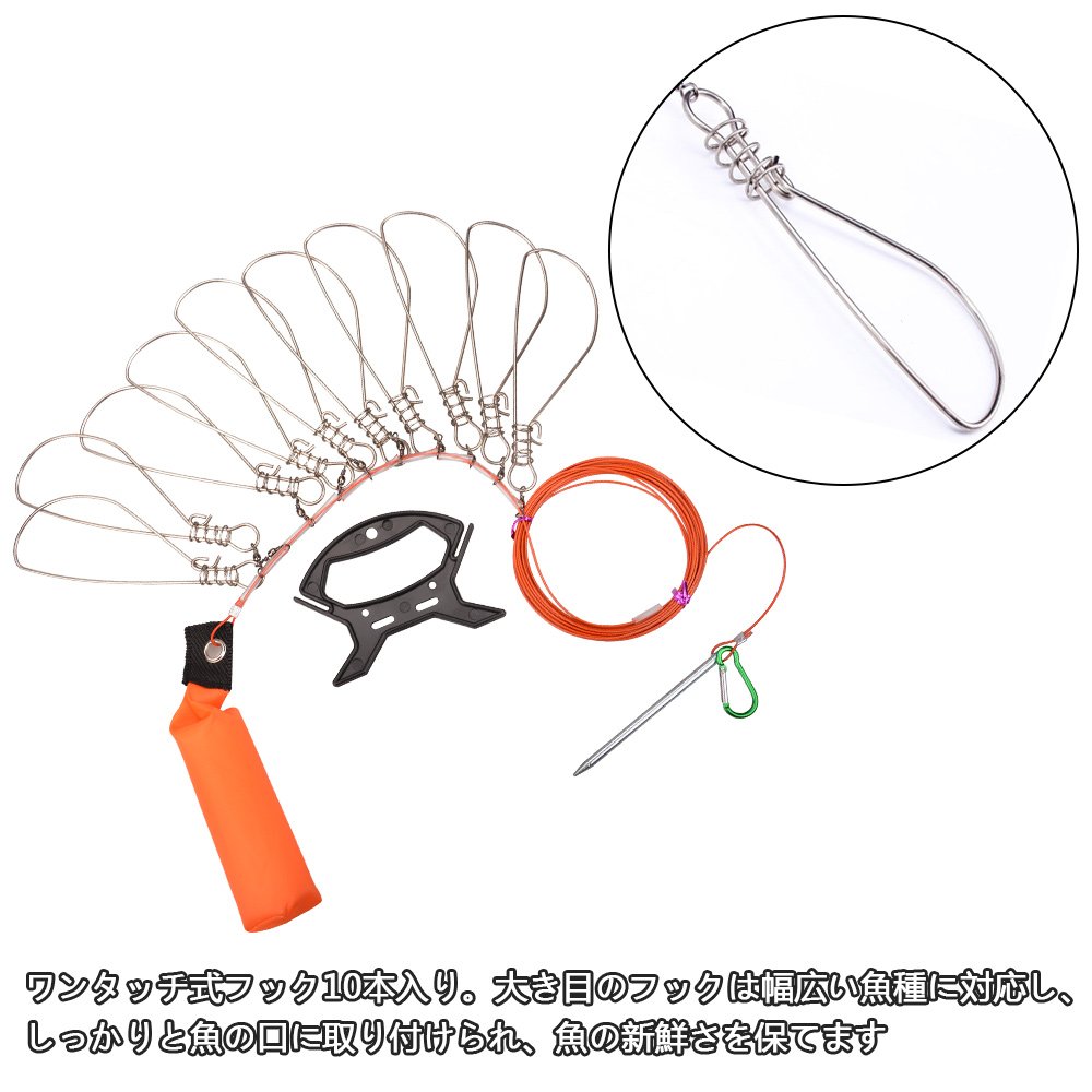 One-touch type hook 10 pieces entrance: It is made of rust-resistant stainless steel with a large size of 170 mm, so it corresponds to a wide range of fish species, and it is securely attached to the mouth of the fish.