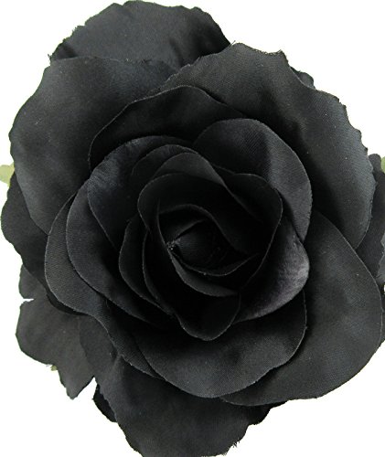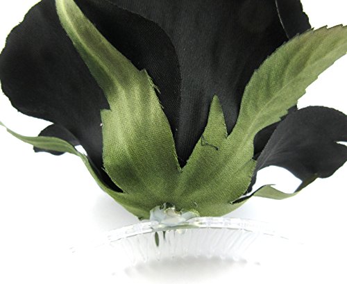 Product Description5" x 2" fully open black rose attached to a clear plastic comb0
