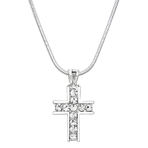 -. Title : Cross Pendant Necklace Rhinestone Crystal High Polished Rhodium J0368-CR