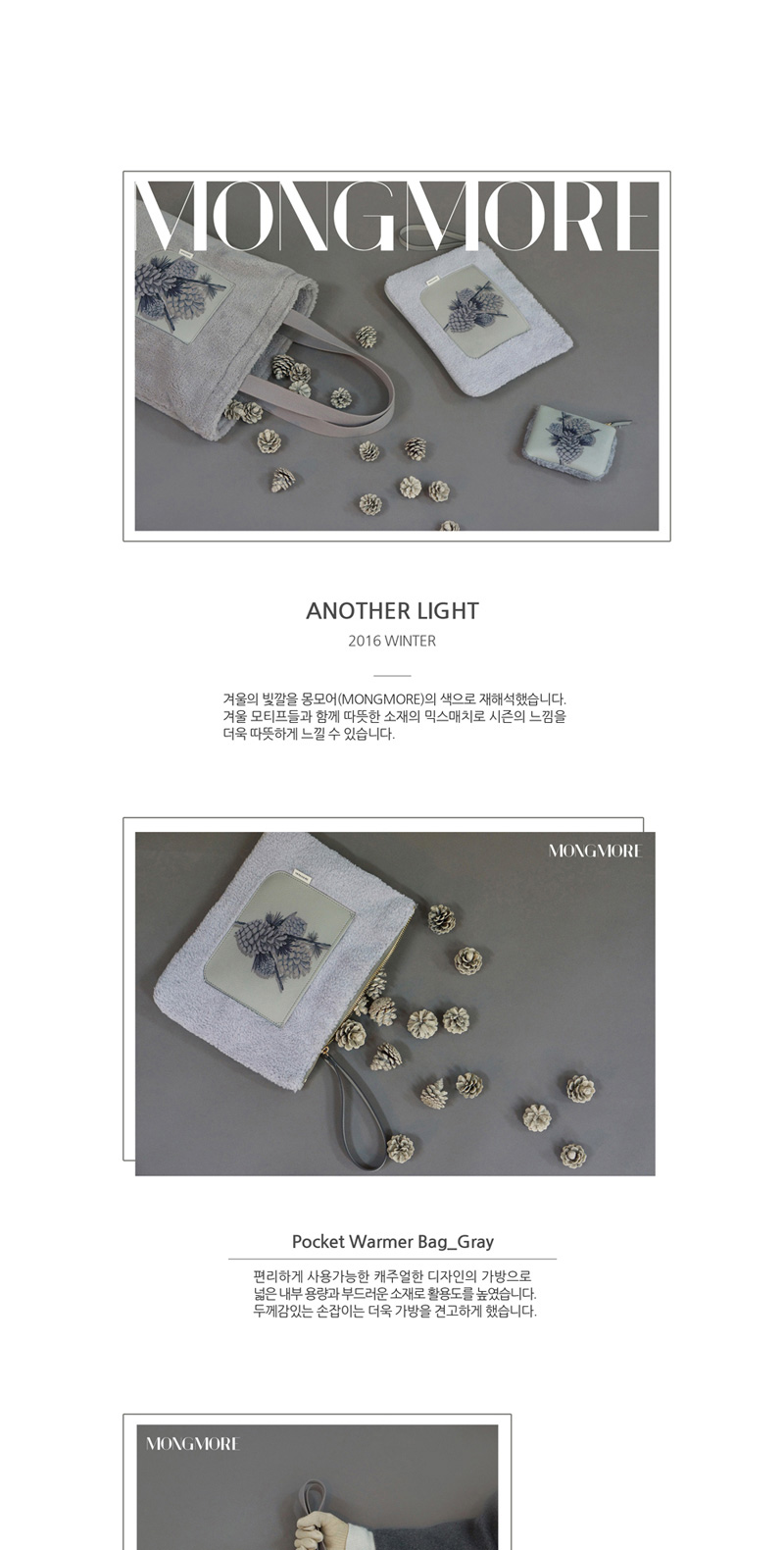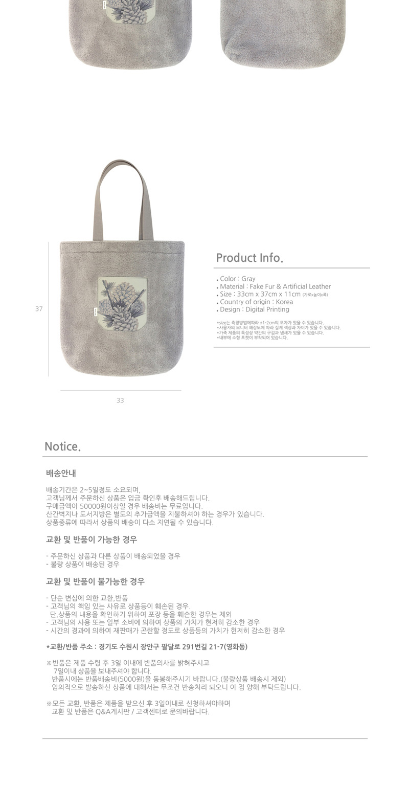 - 주문시 유의사항 : 배송기간은 2~5일정도 소요되며, 고객님께서 주문하신 상품은 입금 확인 후 배송해드립니다. 구매금액이 50000원 이상일 경우 배송비는 무료입니다. 산간벽지나 도서지방은 별도의 추가금액을 지불하셔야 하는 경우가 있습니다. 상품종류에 따라서 상품의 배송이 다소 지연될 수 있습니다. 겨울의 빛깔을 몽모어의 색으로 재해석했습니다. 겨울 모티프들과 함께 따뜻한 소재의 믹스매치로 시즌의 느낌을 더욱 따뜻하게 느낄 수 있습니다. 편리하게 사용가능한 캐주얼한 디자인의 가방으로 넓은 내부 용량과 부드러운 소재로 활용도를 높였습니다. 두께감있는 손잡이로 가방을 더욱 견고하게 했습니다.