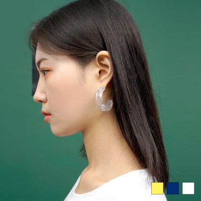 투명한 소재에 반짝이는 글리터가 포함된 유니크한 이어링입니다. 독특한 악세사리로 특히 여름에 활용하기 좋아요 :)