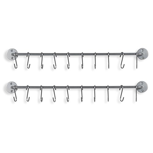 - Well-Constructed and Practical: Each 24.5” x 3” x 3” kitchen rail is high-quality and comes with 10 2 ¾” hooks. This functional storage solution is great for hanging your pots, pans, utensils, apron, oven mitt and gloves while safely storing your fragile lids on top of the rack.