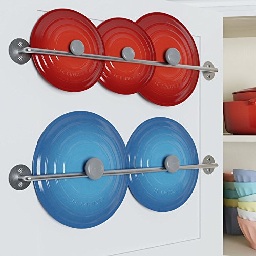 WALLNITURE Kitchen Pot Pan Lid Rack with Hanging Hooks Gourmet Steel Silver 24 Inch Set of 2
