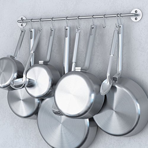 - Space Saver Ingenious Design: Make room in your cabinets for other things that need storing, you can use the space from your handled cookware functionally, your pots and pans will hang beautifully from this set of 2 wall rail.