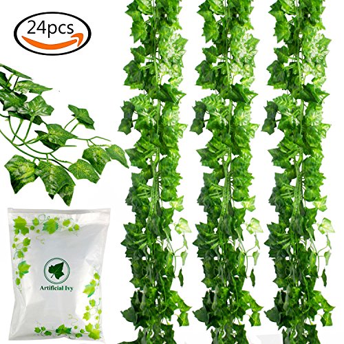 JPSOR 24pcs (157 Feet) Artificial Greenery Fake Ivy Leaves Garland Hanging for Wedding Party Garden Wall Decoration