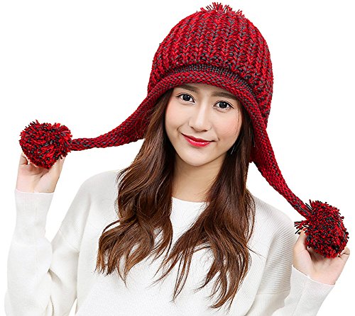 -. Title : ミナコライフ ニット帽 ポンポン 大きいサイズ 耳あて付手編み レディース 秋冬 スキー スノボ 防寒 雪山 メンズ ケーブル編み
