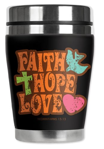 Mugzie Faith, Hope & Love "Mini" Travel Mug with Insulated Wetsuit Cover, 12 oz, Black