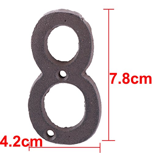 Studio : uxcell Publisher : uxcell Product Description The color of these numbers is chocolate color. Made of cast iron material,easy to install on the wall and rust resistant to keep it a long life. New modern design, easy to read and recognize. Can be used as house, hotel number plate, door number or as numeric digit for other buildings. Available number shaped are:0, 1, 2, 3, 4, 5, 6, 7, 8, 9, Shape # 1, Shape # 2 Notes: 1. Due to the light and screen differences, the color of item may be slightly different from the pictures. Please understand. Make sure you do not mind before you bid. 2. Please allow 1-2cm differences due to manual measurement. 0