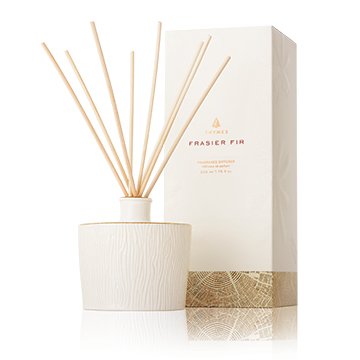 The Frasier Fir reed diffuser spreads crisp freshly cut forest scent through your surroundings