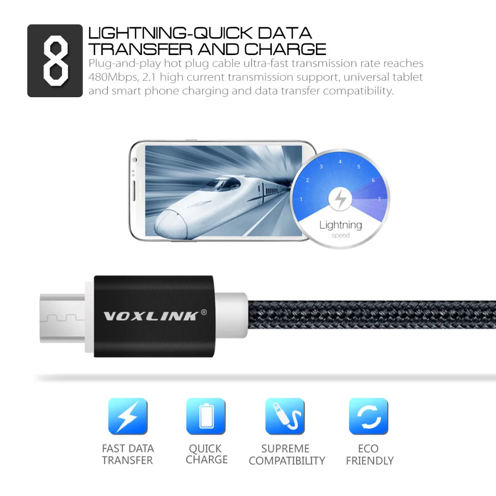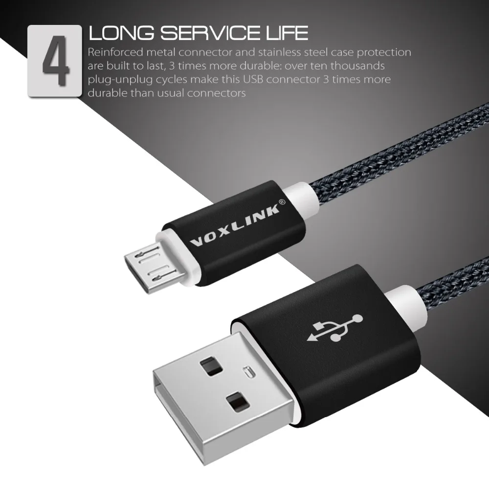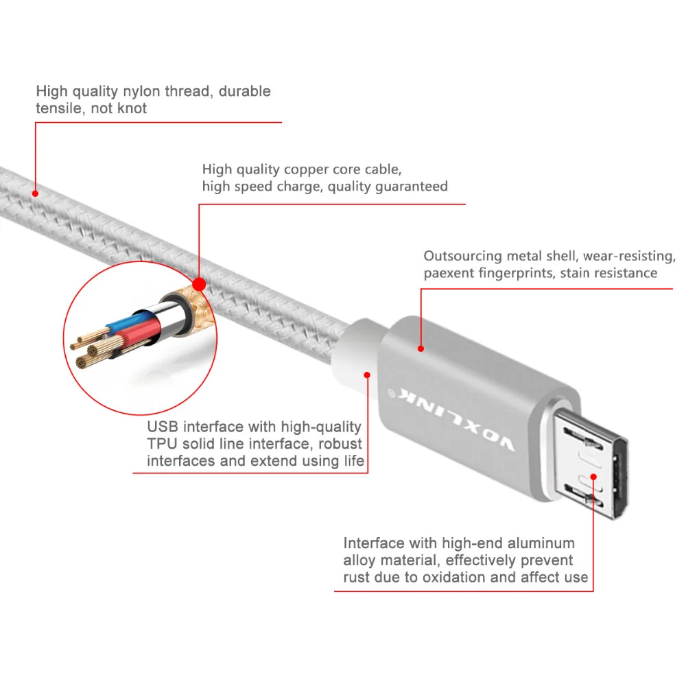 Feature:Metal Nylon Braid Micro USB Cable for Android