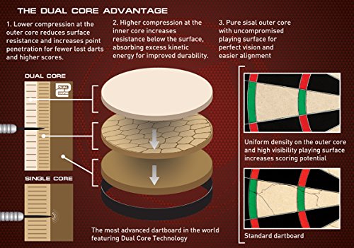 - Feature : Regulation size 18" x 11/2" bristle board / Lower compression at the outer core reduces surface resistance and increases point penetration / Higher compression at the inner core increases resistance below the surface, improving durability / Pioneering new staple-free wiring system for best-in-class performance / 50% thinner Dynamic Sector Wire for reduced bounce-outs and maximum scoring potential