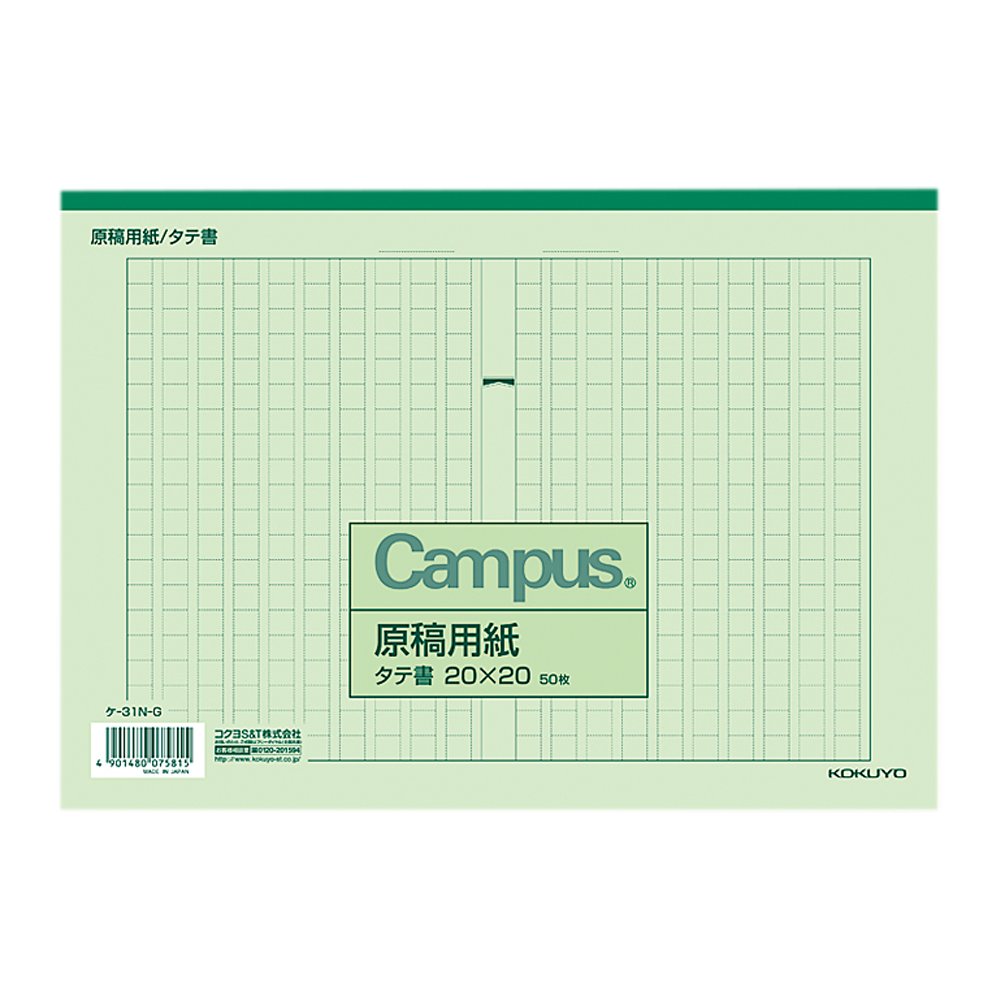Kokuyo Campus manuscript paper vertical writing B5 character packed 20x20 50 sheets Kei-shokumidori Ke -31N-G