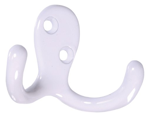 The Hillman GroupThe Hillman Group 852084 Double Clothes Hook- White 2-Pack