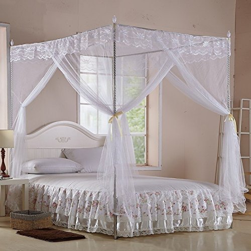 White Four Corner Square Princess Bed Canopy (TWIN)
