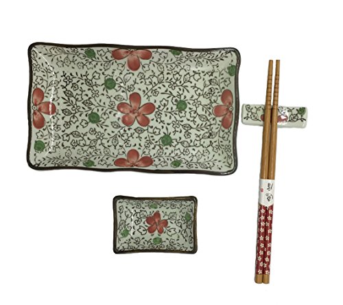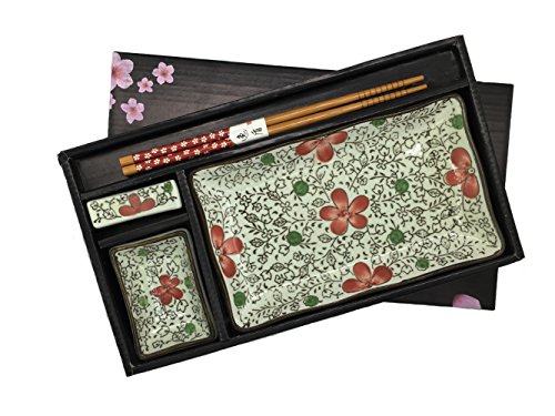 Studio : KCHAIN LIMITED Publisher : KCHAIN LIMITED Product Description Hand painted sakura decor is a traditional Japanese ceramic craft. A great gift for housewarming, engagement and wedding. Package include: 1pcs x square plate 1pcs x square sauce dish 1pair x bamboo chopsticks 1pcs x chopsticks rest 1pcs x gift box 0