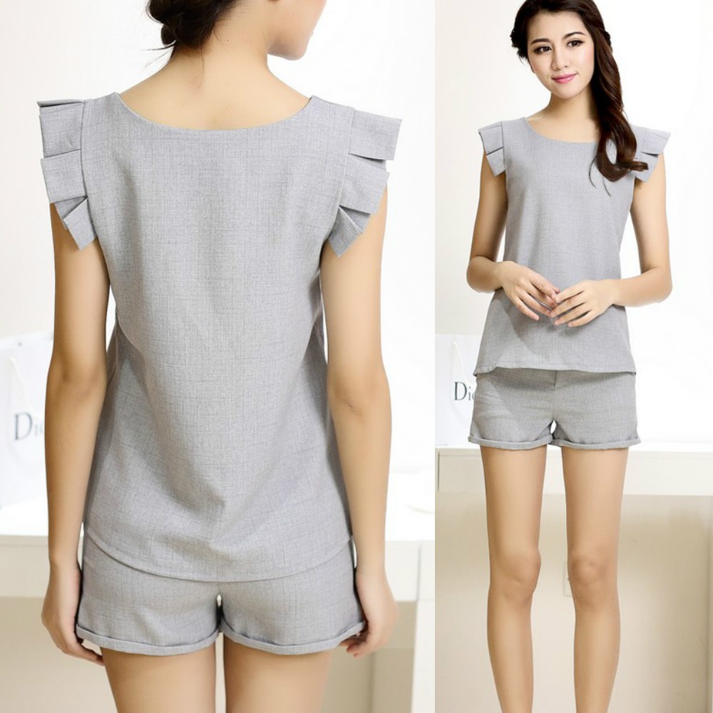 フェミニン☆キュートフリル フレンチスリーブ トップス&ショートパンツ セットアップ