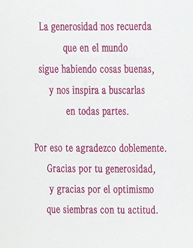 Inside Message: La generosidad nos recuerda que en el mundo sigue habiendo cosas buenas, y nos inspira buscarlas en todas partes. Por eso te agradezco doblemente. Gracias por tu generosidad, y gracias por el optimismo que siembras con tu actitud.