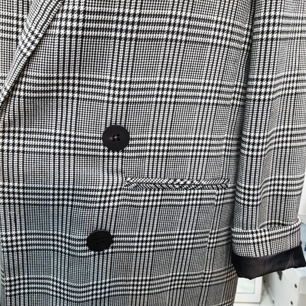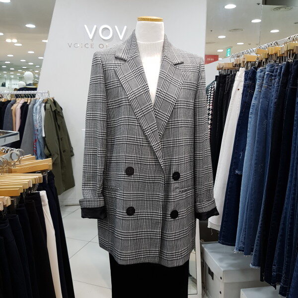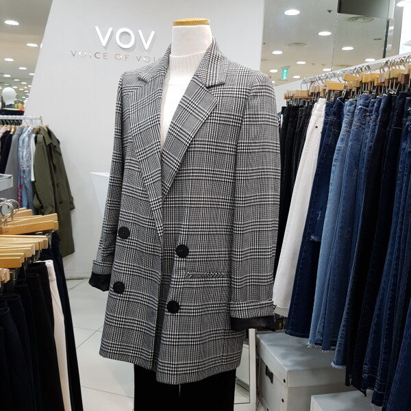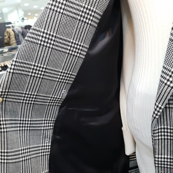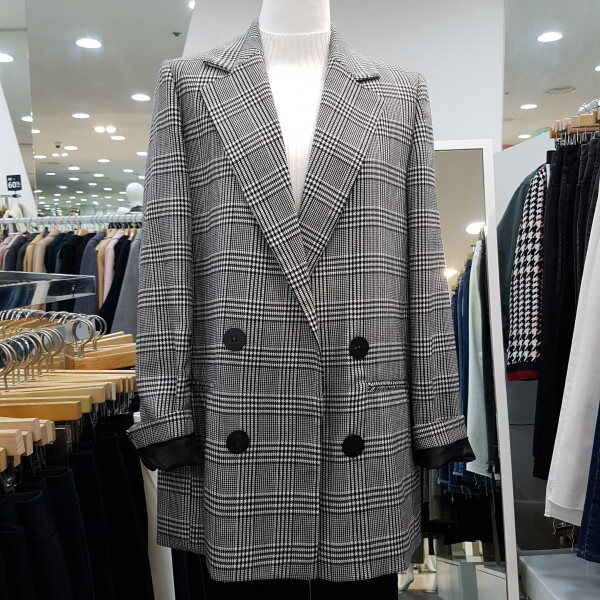 베이직한 체크 패턴의 블랙 자켓 입니다일자로 떨어지는 핏감이 세련 스러우며 더블 버튼 디테일이 클래식한 느낌을 을 더해 줍니다