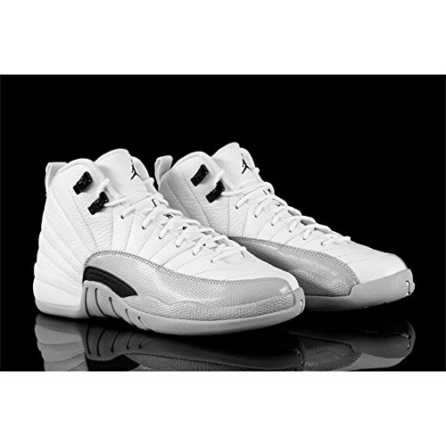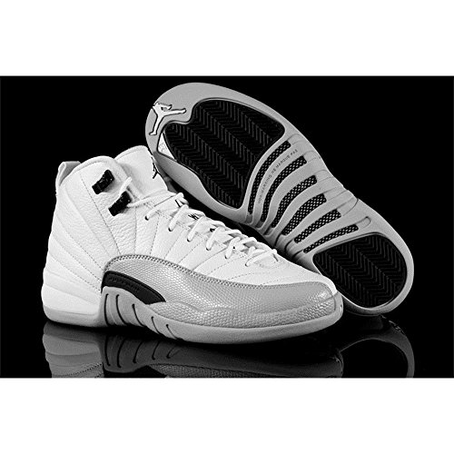 Studio : Nike Publisher : Nike Binding : Shoes Product Description The Air Jordan 12 Retro Big Kids' Shoe is a hardwood original with radiant style. Equipped with Air-Sole cushioning and multidirectional traction, this shoe has the performance features that have made it a favorite. White/Black/Wolf Grey leather-and-synthetic Leather upper with perforations for comfort and breathability Air-Sole unit with Phylon midsole for superior cushioning Rubber outsole with herringbone pattern for traction and durability 0