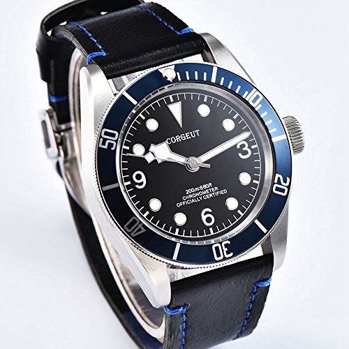 -. Binding : Watch -. Brand : Corgeut -. Color : black -. Department : Mens -. EAN : 0744750236592 -. Feature : This watch is 41mm and luminous dail,Deployment Buckle / sapphire glass with miyota movement / This is tang buckle and it is easy to wear. / Thee watch is sent by DHL and you can get it very fast(3-5days to get) -. Label : Corgeut Factory -. Manufacturer : Corgeut Factory -. MPN : CA4101SBW -. PackageQuantity : 1 -. PartNumber : CA4101SBW -. ProductGroup : Watch -. ProductTypeName : WATCH -. Publisher : Corgeut Factory -. Size : 41mm -. Studio : Corgeut Factory -. Title : 41MM Corgeut sapphire glass black dial Black Bay black leather band Deployment Buckle Luminous 20ATM Mens Marks Watch Wrist watches Relogio Masculino Auto Watch B930 -. UPC : 744750236592