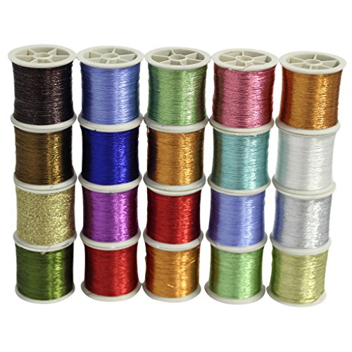 -. Feature : SPOOLS- Each pack consists of 20 polyester thread spools in an assortment of glittery metallic colours including gold, pink, blue, green, red and more! / METALLIC- Our massive metallic sewing thread set is great for using with sewing machines and for needlework crafts. Add a splash of glitter and glamour! / SIZE- Each spool holds measures 3cm/1.1inches in height and holds 3.1 metres of thread- that's a super 62 metres of thread! / USE- This is great to mix in with wool for knitting, for crochet, cross stitch, quilting, embroidery, and general sewing embellishment. / *100% No Quibble Money Back Guarantee. If For Any Reason You Are Not 100% Satisfied, Please Contact Us For A Fast No Questions Asked REFUND.