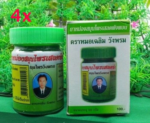 -. Title : 4x50G.Wangphrom Thai Herbal Balm Massage Body Relief Muscle Pain,Thai Herb Green Balm Best Seller