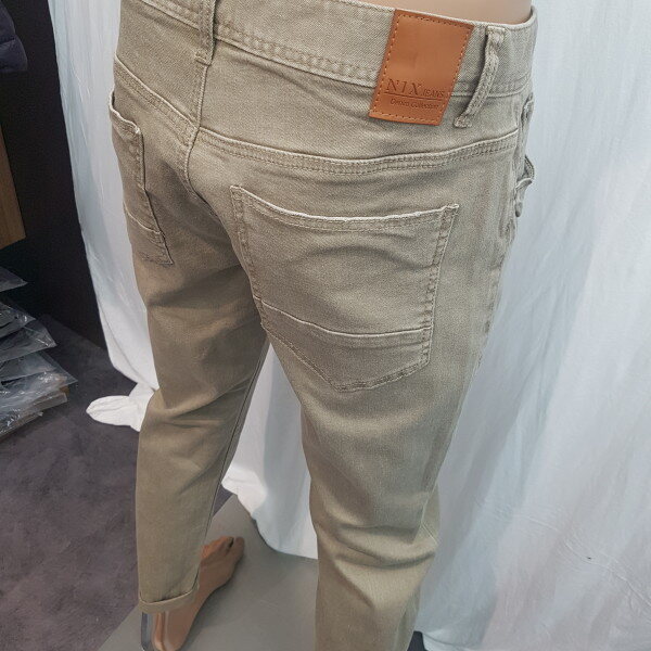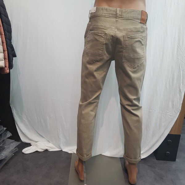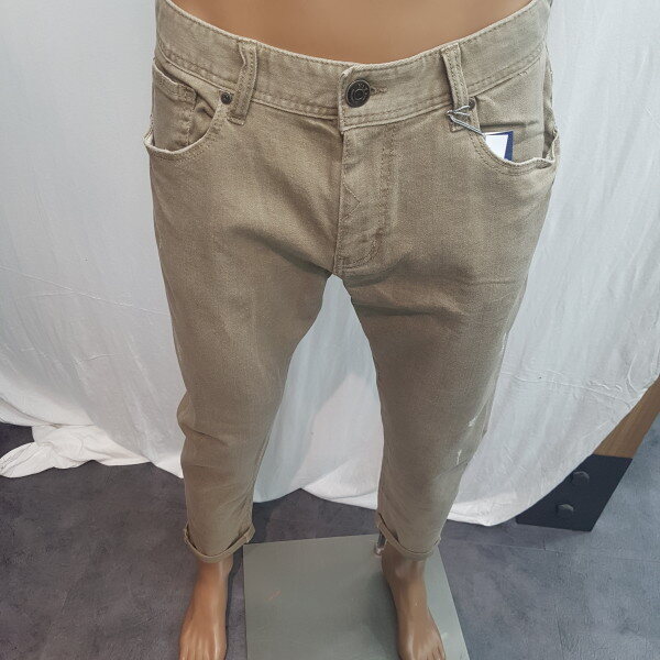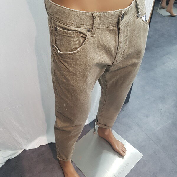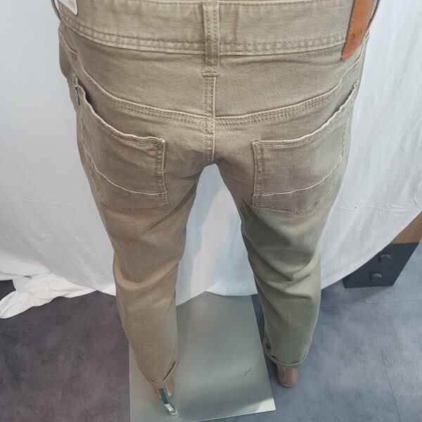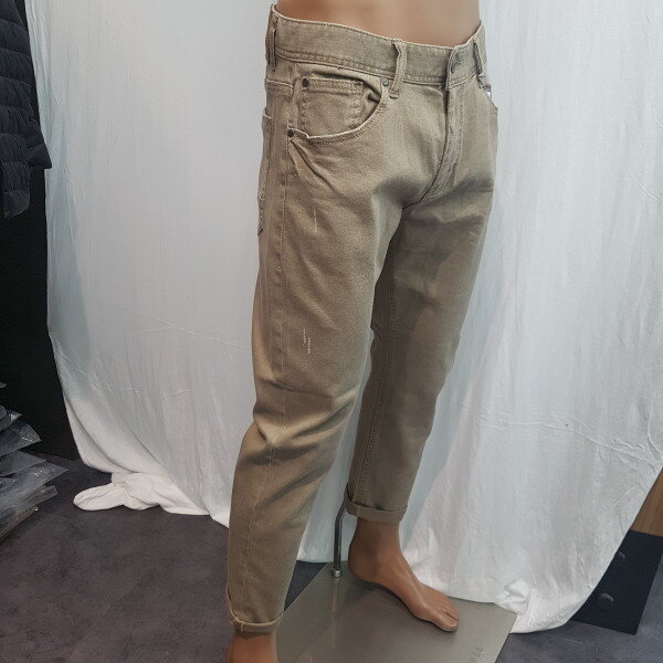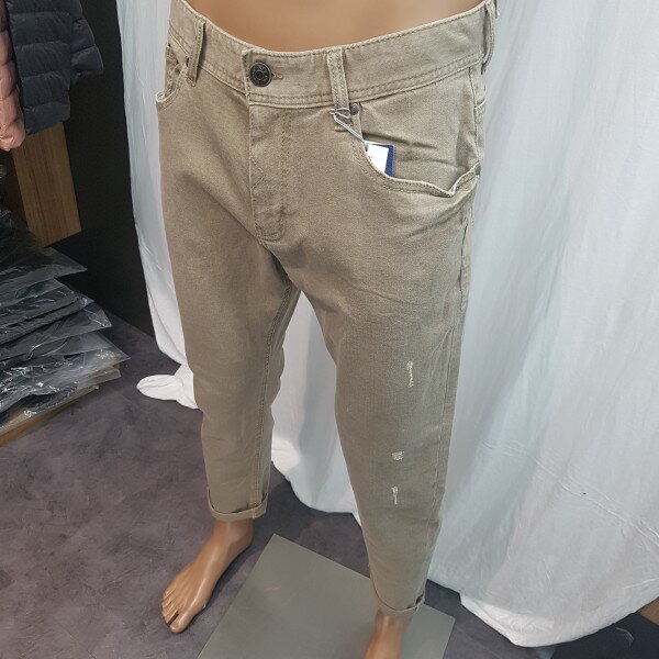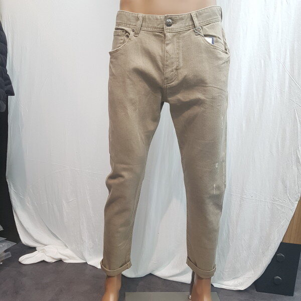 2018년 신상입니다. 그레이가 섞인 베이지 컬러의 컬러데님으로 밋밋한 면바지보다 멋스러움을 느낄 수 있는 제품입니다.