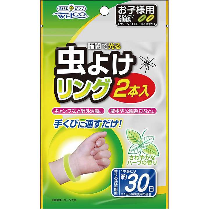 ●腕に通すだけでいやな虫をよせつけにくい。殺虫成分不使用。手首につけるだけカンタン。暗闇でほんのり光ります。